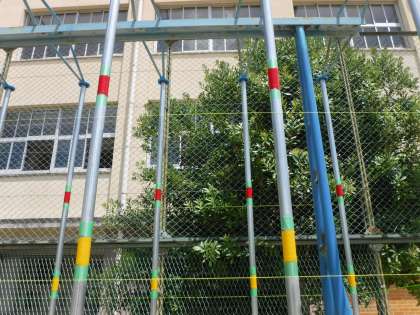 「赤い線まで登りたいな。」「黄色い線まで登れたよ。」と、子どもたちが登るときの指標にできればと考えています。どんどん登ってほしいです。