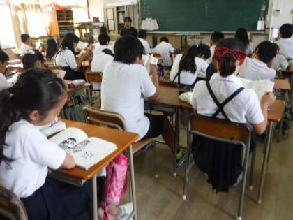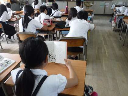 それぞれの教室で、子どもたちが本を手に取って静かに本の世界に親しむ時間です。