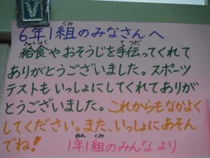 1年生から6年生への贈り物です。