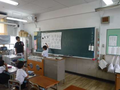 子どもたちは黒板の前で自分の考えを自信満々で発表していました。