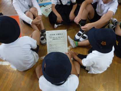 ゲームをした後は、それぞれの班で毎回活動の降り返しをします。その様子を写したものです。