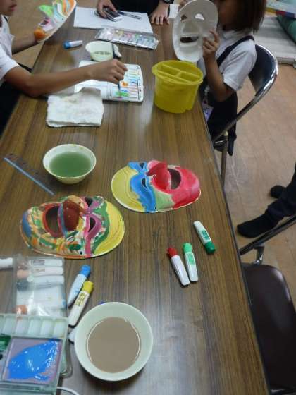 この日は、韓国・朝鮮半島に伝わる魔よけのお面をつくっていました。