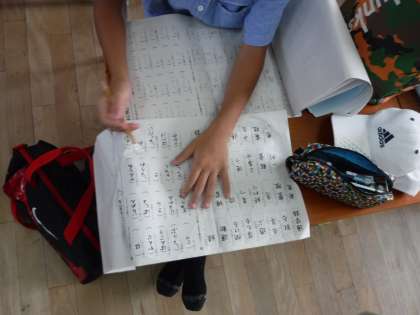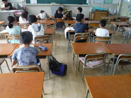今年度から教室に空調機がついたので、涼しい中で友だちと一緒に集中して夏休みの宿題に取り組んでいました。