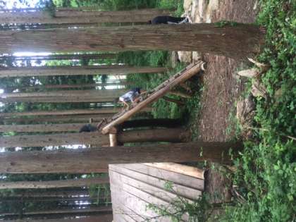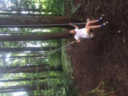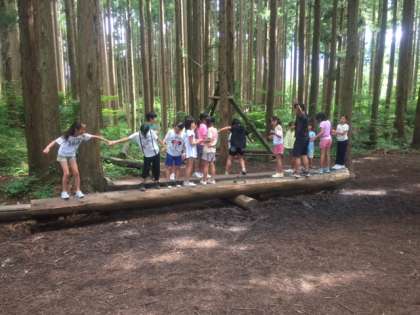 「着替えた後、スイカを食べてアソベチックの森。子ども達は笑顔いっぱいです。」