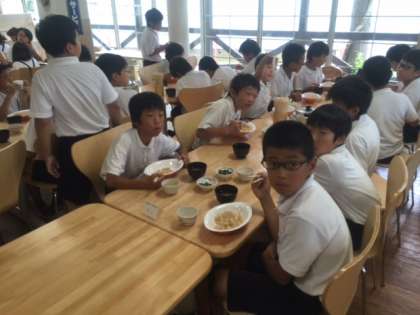 林間学習3日目、みんなで宿舎での最後の食事を楽しみました。