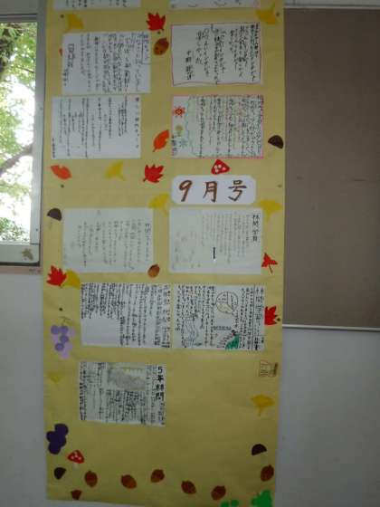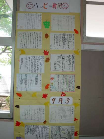 新聞委員会がつくったハッピー新聞の9月号を職員室前に掲示しています。