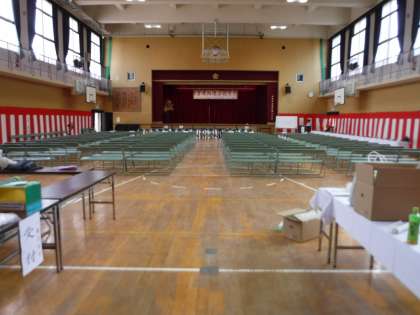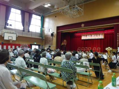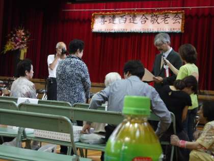 9月19日(祝・月)台風の接近により、実施が危ぶまれた敬老会ですが、雨にも降られず、やや涼しい講堂で行うことができました。