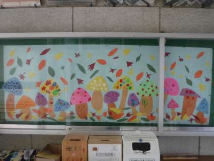 玄関に子ども達がつくった掲示物を貼っております。