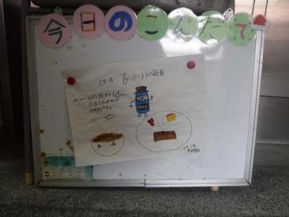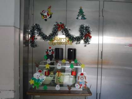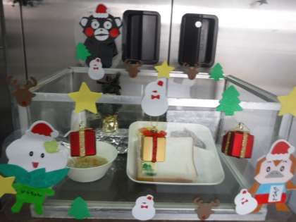 給食調理員さんが子ども達のために、献立の周りにクリスマスの飾りつけをしてくれました。