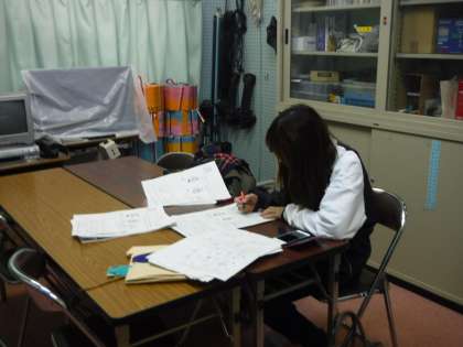 授業が合わった後、竹田先生が子ども達のワークシートを1枚ずつ見て、赤ペンでコメントを入れてくださっています。このような影の努力を栄養指導の度にしてくださっています。