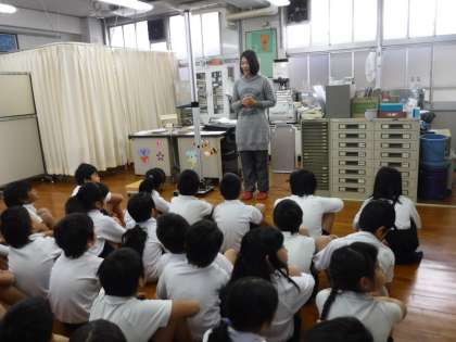 身長・体重を測る前に、養護教諭の和田先生から体の成長についてお話を聞いていました。