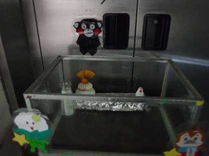 子どもたちが給食を取りに来るときに見る献立の展示ケースも、新年を迎えるバージョンにしてくださっています。細やかな心遣いがとっても嬉しいです☆