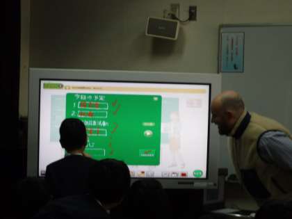 今年初の外国語活動の様子です。5年生がラクロイ先生・高岸先生と一緒に英語を楽しんでいました。