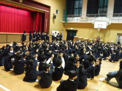 2月6日(月)全校朝会で飼育栽培委員会の発表がありました。