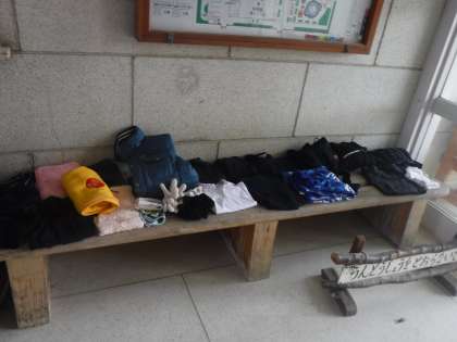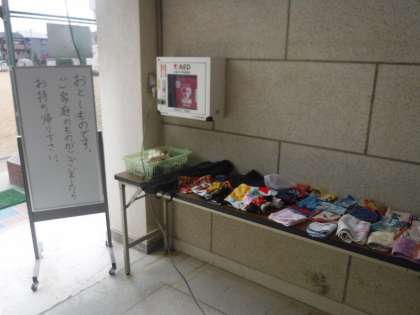 本日の土曜授業に合わせて、玄関ホールに落し物を並べています。