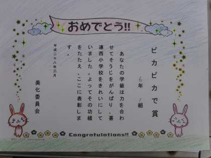 もう1つは、美化委員会がそうじをがんばっていた学級に贈る「ピカピカで賞」です。