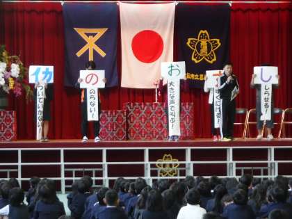 春休みの過ごし方について、子ども達に指導しております。子ども達には「イカのおすし」の約束を確認しました。子ども達が安心して安全に春休みを過ごしてくれることを願っています。