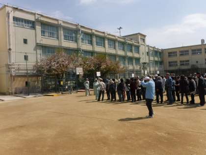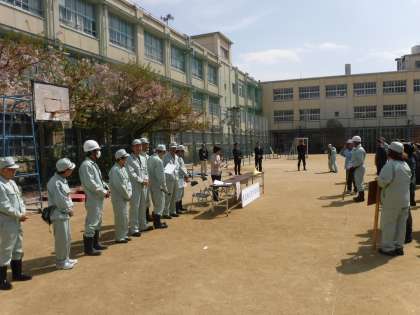 今から、本校運動場や講堂で各種の訓練が始まります。