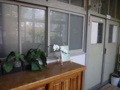 校長室入口にある蘭の花が咲きました。 子どもたちも見ていました。