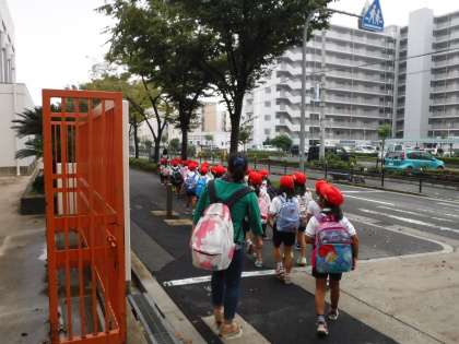 1年生が、遠足に出発しました。