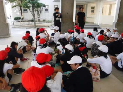 中学校のクラブ体験に6年生が出発します。 みんな笑顔です・・・