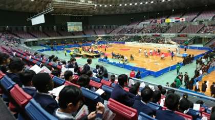 中央体育館での迫力あるプレーに