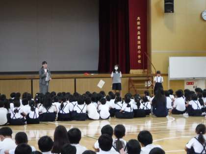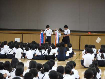 6年生から、広島に届ける「全校でつくったおりづる」についての