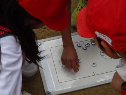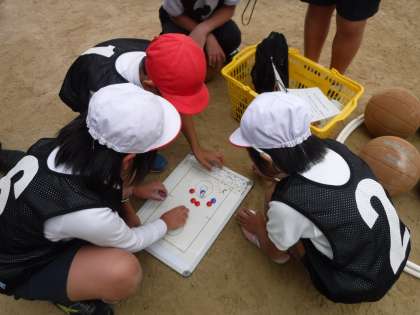 全学年でボール運動領域を中心に、作戦やめあてをチームで話し合い、