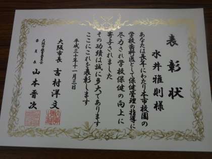 大阪市の校医先生として、20年以上ご勤務されましたので、