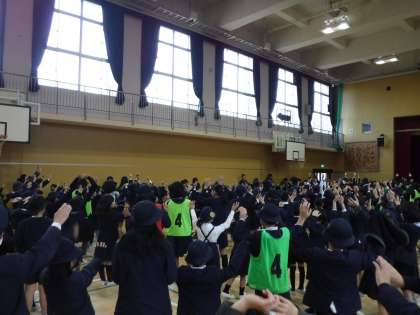 写真は、本日、全校児童で取り組んだ『集会』の様子です。