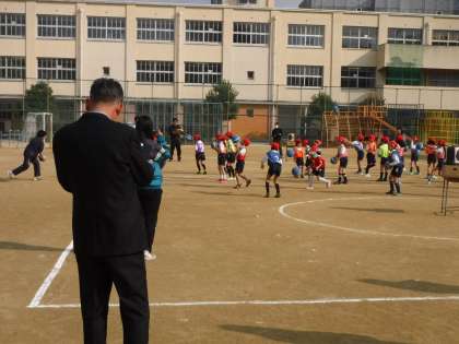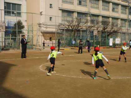 子どもの体力づくりモデル校 2年研究授業『キングシュートゲーム』(1月23日)