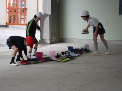 また、体育館前では、下靴を自分たちできれいに並べて、