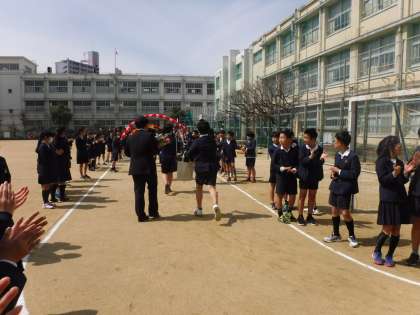 卒業生、在校生、教職員共に、小学校生活の最後の日を
