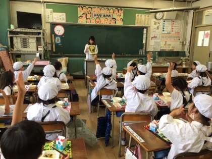 栄養教諭の高木先生が、給食時に1年生の教室へ来て 野菜クイズをしてくださいました。みんな張り切って、答えていました。