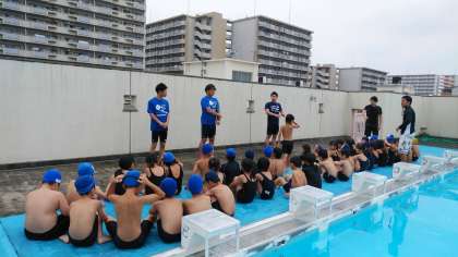 セントラルウェルネスクラブの方に来ていただき着衣泳行いました。いつものプールと違い、服を着て浮いたり、ペットボトルを使って浮いたりと、子どもたちは楽しみながら、浮き方を練習しました。またご家庭でも話を聞いてあげてください。
