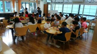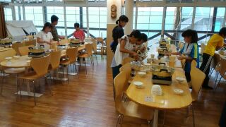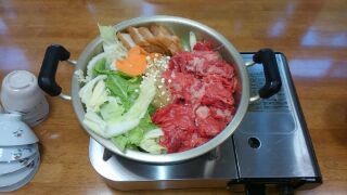 夕食はすき焼きです。食事係が10分前から準備してくれています。しっかり食べてこの後のキャンプファイヤーをがんばってほしいです。