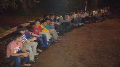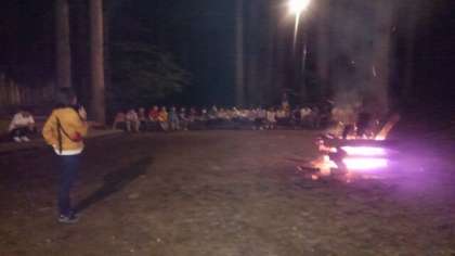 先生ゲーム「オモチャのチャチャチャゲーム、あんたがたどこさゲーム」をして、最後にビリーブをみんなで歌いました。キャンプファイヤーを通して、5年生の仲間意識が少しでも育ったらと思います。