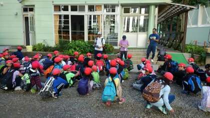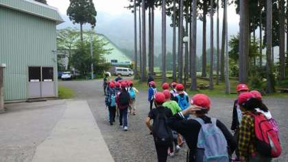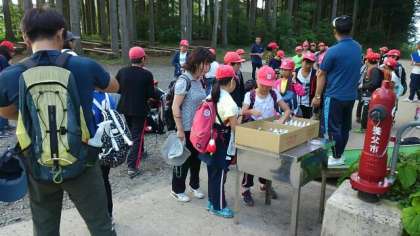 昨夜はよく眠られなかった子が少なくなかったようです。朝の集いで1日の予定を確認しました。リュックにおにぎりをつめて、登山に出発します。