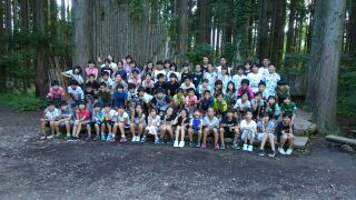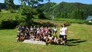 高原散策では、モニュメントで学級写真を、キャンプファイヤー場で学年写真を撮りました。