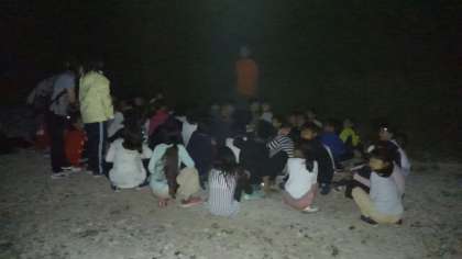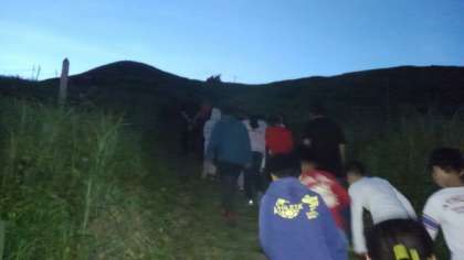 ナイトウォークに出発しました。静かに歩いて、自然の音を感じます。虫や風の音だけでなく、星の多さ、匂い、肌で感じることなど、たくさんの意見が出ました。宿舎の方から鉢伏山の話などを聞かせていただきました。
