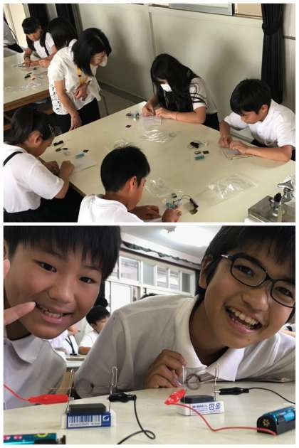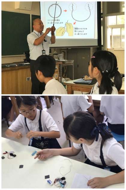エナメル線を削り、磁石とクリップを使って回転させました。