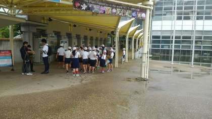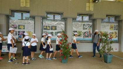 10月8日(火)4年生が鶴見緑地公園へ遠足に行きました。咲くやこの花館へ向かう途中雨が降ってきましたが、屋根のある館の入り口に滑り込んで、ずぶ濡れにならずにすみました。咲くやこの花館で、いろいろな植物を観察します。