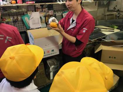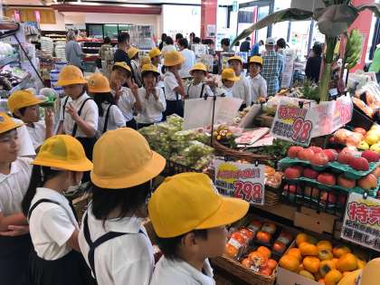 社会科の学習でスーパーマーケットの見学を行いました。いつもは見ることのできない裏側を興味深々に見学していました。