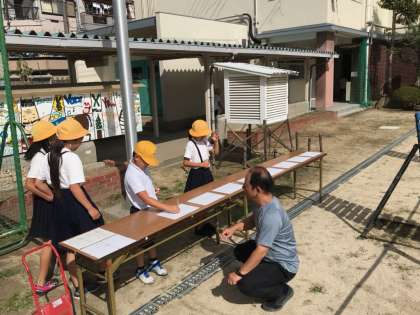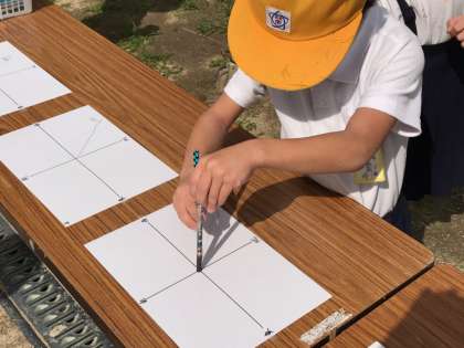 3年生が休み時間ごとに運動場で影を調べていました。