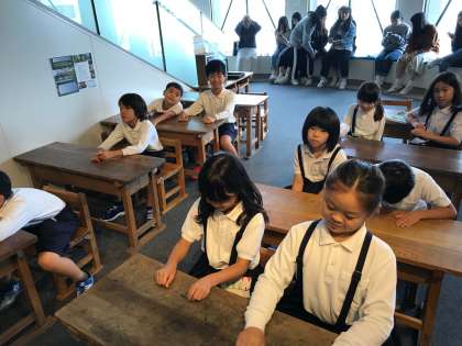 くらしの今昔館に行きました。昔の道具や暮らしに驚いていました。