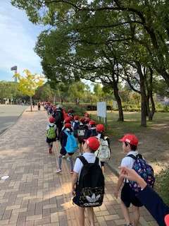 延期になっていた遠足。子どもたちの気持ちが通じたのか、とてもいい天気の中、無事長居公園に到着しました。