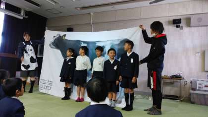 メグミルクの方に来ていただき、3時間目はカルシウムについてなど食育を、4時間目はバター作りを行いました。子どもたちは、とても集中して話を聞いていました。また、パンフレットなどもいただいていますので、お家の方でもお話を聞いていただけたらと思います。