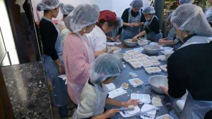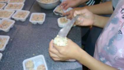 次は、焼売手作り体験をしました。皮でうまく包めたでしょうか。
