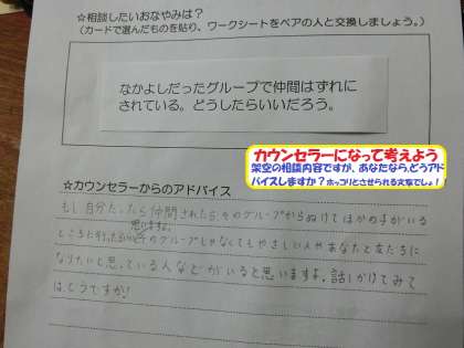 カウンセラーになっての子ども達がアドバイスした内容です。