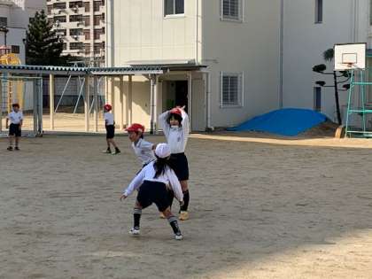今日は2学期最後の体育がありました。体ほぐしの運動や仲間集めゲームをした後ドッチボールをしました。最後に運動場で鬼ごっこ(魔法使い鬼ごっこ)をして楽しく体を動かしました。
